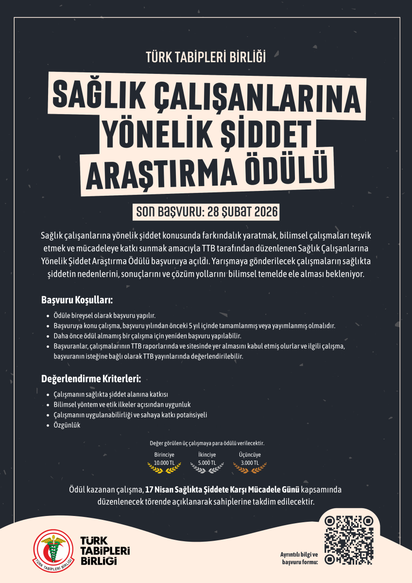 Son başvuru tarihi 28 Şubat 2026 olarak belirlenirken, ödül kazananlar 17 Nisan Sağlıkta Şiddete Karşı Mücadele Günü kapsamında düzenlenecek törende açıklanarak sahiplerine teslim edilecek.